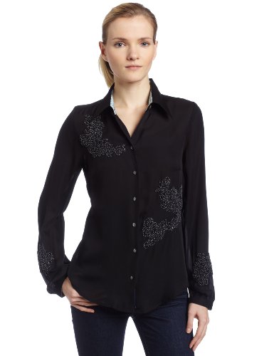@@@ Product Details : Robert Graham Women's Sierra Embellished Sheer Long Sleeve Blouse,Black,Small