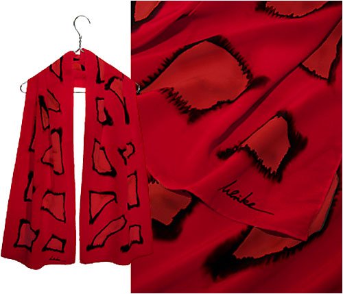 Review Best : ULRIKE Oblong Crepe de Chine Silk Scarf - A true rich red singed with black.