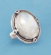@@@ Product Details : Sterling Silver Ring, 15x20mm Oval Rainbow Moonstone, 1-1/16 in wide
