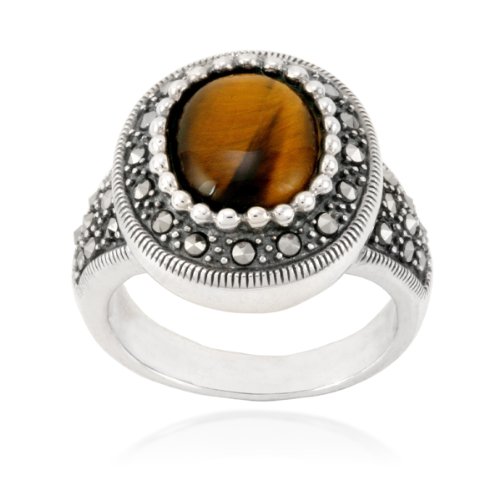 Best Price : Sterling Silver Marcasite and Oval Tiger's Eye Ring, Size 5