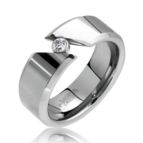 @@@ Product Details : Bling Jewelry Smooth Tension Set CZ Tungsten Carbide Ring Unisex 8mm