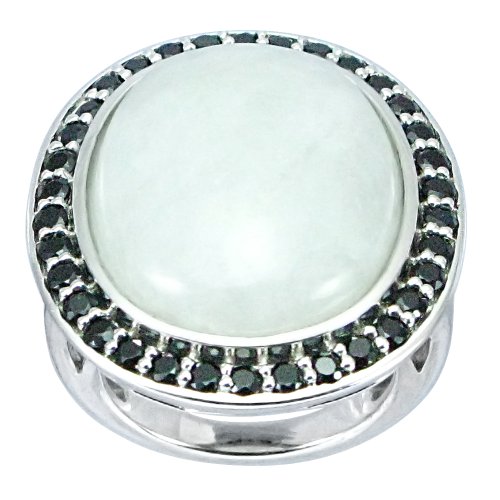 @@@ Product Details : Sterling Silver White Jade and Black Spinel Accent Ring, Size 7