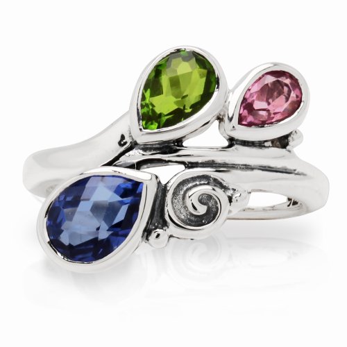 Buy Now! Sajen Sterling Silver Kunzite Caribbean and Sapphire Quartz Ring, Size 8