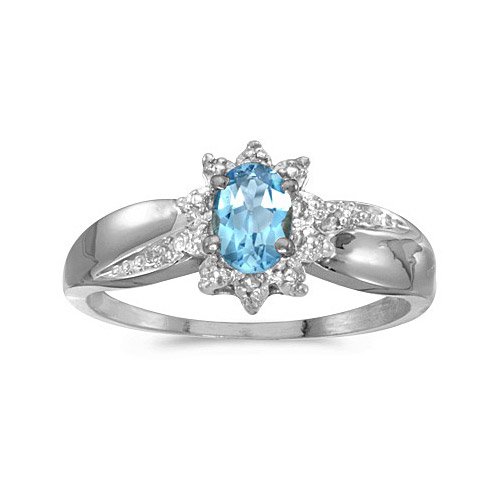 Today Deal : 10k White Gold Oval Blue Topaz And Diamond Ring (Size 11)